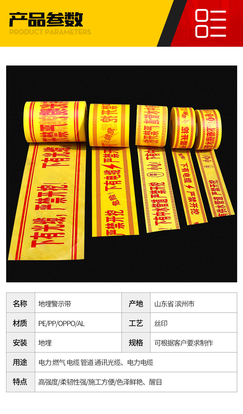 警示带高压电缆 埋地警示带¥0.60地理警示带 地理警示 厂家支持定制 不易腐蚀 量大从优¥0.18产品系列