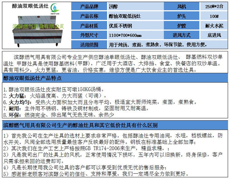 醇基燃料双眼低汤灶产品适用范围:大排档,酒店,厨房,大小餐厅