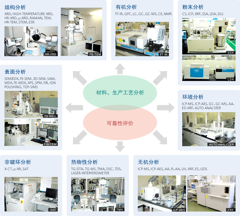 运用先进的分析装置,致力于“商品开发”、“保持稳定的可靠性”、“提高合格品的可靠性”。