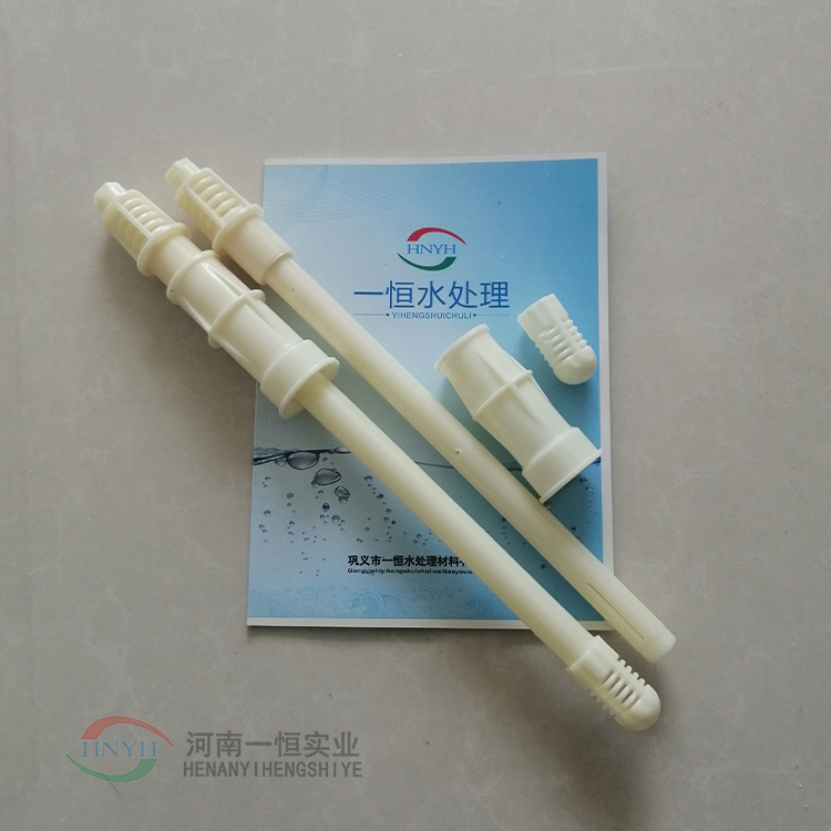 滤头滤帽是滤池底部配水系统汽水反冲洗装置,它能有效地冲洗出滤池中的污泥杂物,保证滤池水质水量正常运行。主要适用于各种过滤器、滤池。滤头的滤帽弧面上均匀开有精心加工的长条细缝,既能防止滤料的漏出,又能确保配气和配水均匀。滤杆是一根塑料管顶端开有一个小孔,靠近底部有二条进气条缝,压缩空气进入滤板下面的空间后,缓慢地形成空气层,并逐渐变厚,空气层下面的水不断下降,直到水面降至滤杆下部的长条进气条缝处时,这时空气开始由条缝孔流入滤杆。当流进的空气流量与经滤帽缝隙流流走的流量相等时,水面便停止下降,稳定在一定位置上,进入的空气经滤杆上升通过滤帽的缝隙喷射到滤料层中去,由于多个滤头的交叉喷射均匀分布,达到良好的反冲洗效果。