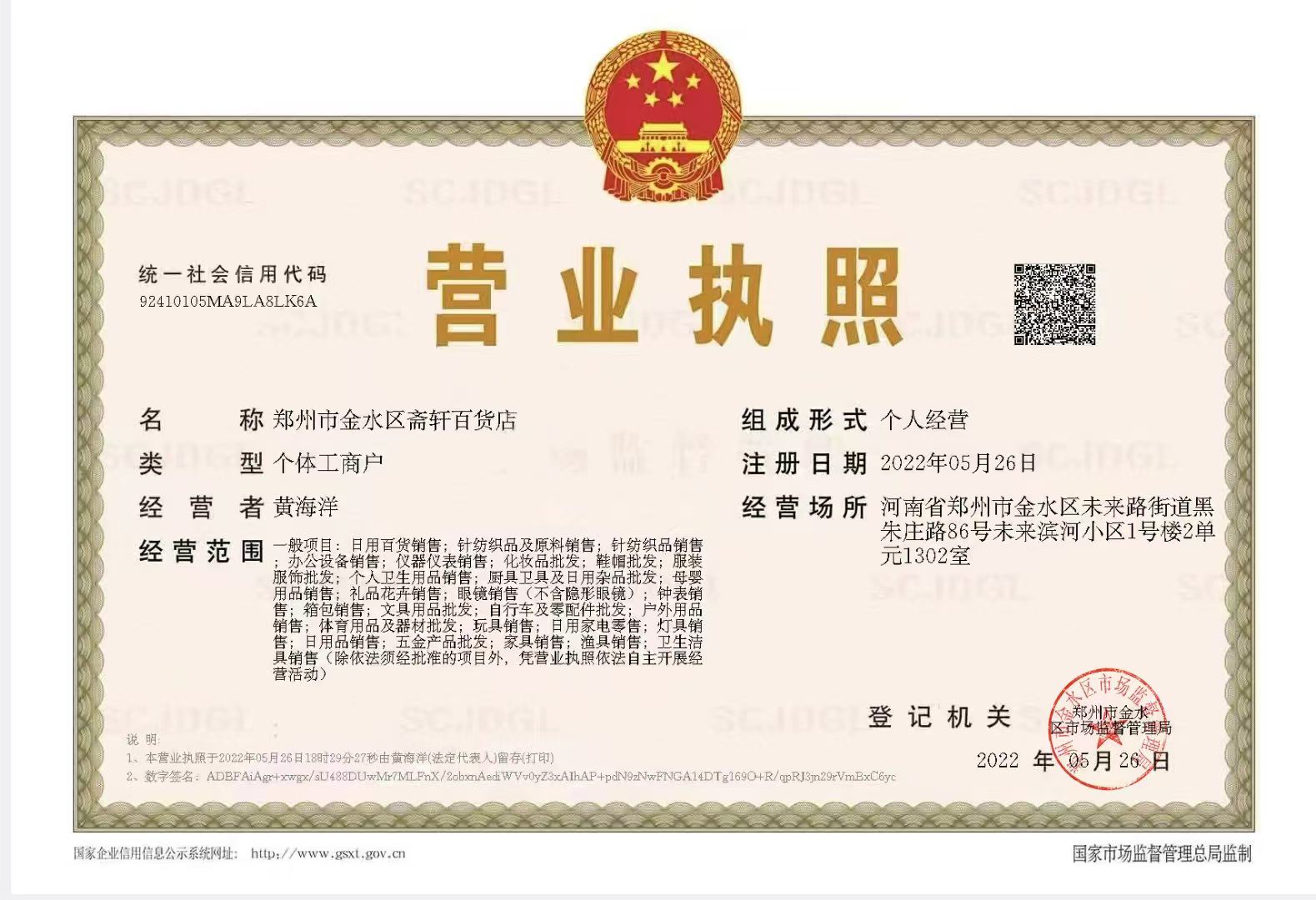 郑州市金水区斋轩百货店
