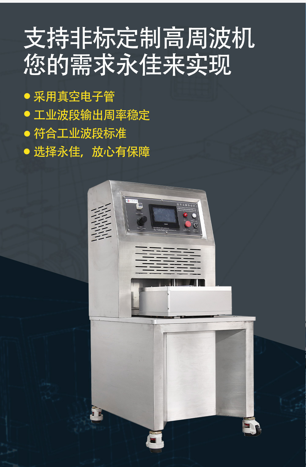 高周波焊接机,泡壳包装机,医疗尿袋血液袋输液袋机,热压设备,汽车内饰及部件焊接设备,膜结构帆布熔接机