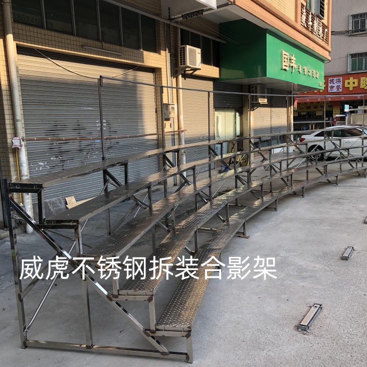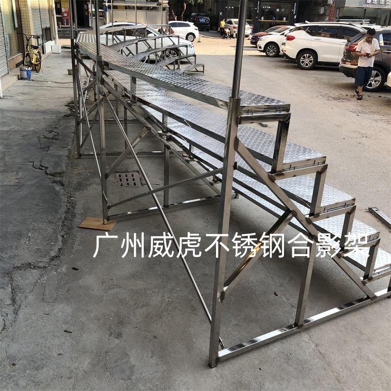 广州市花都区威虎舞台生产铝合金折叠合唱台,合唱台,合影台,看台,组合看台,多用于人多,集合度较高的场合,例如,合唱,合影等。长宽高可根据客户的需求来订做,需要多少层就可做多少层,结构牢固,价格适中,外观精美,深受消费者的认同。