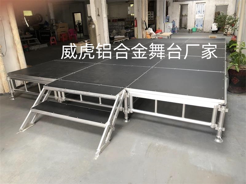 1、舞台常规尺寸:1.22*1.22米/1.22*2.44米。亦可定做其他尺寸。常用尺寸是1.22*1.22米的。