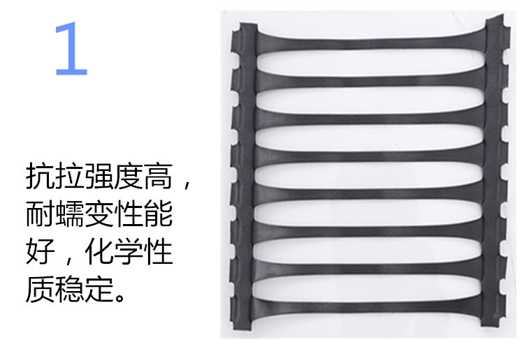 单向塑料土工格栅适用于高速公路、铁路、水利、机场、港口、填海造田、垃圾填埋场、市政建设等工程建设,具有防护、隔离、过滤、加强筋、防渗、排水等多种功能。