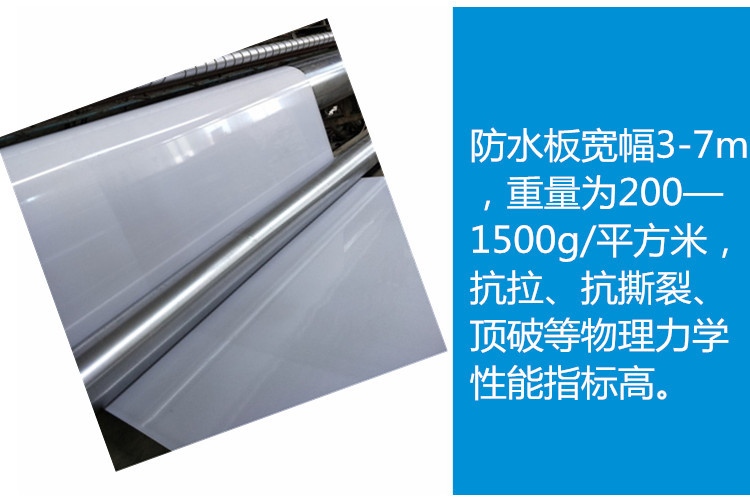 EVA防水板是以EVA为主要原料,加入特殊添加剂和防老剂,经熔融、塑化、挤出、三辊压延成型的新型防水土工膜。与HDPE相比,EVA将乙酸乙烯酯单体引入分子链中,从而降低了结晶度,改善了柔韧性、抗冲击性和包装。它具有良好的相容性和热密封性,并具有优异的耐环境应力开裂性、光学性能和耐低温性。由于材料柔软、易于焊接、透明,焊接效果更容易直接观察。尤其是EVA的软特性更能适应地铁、隧道等地下工程复杂的地形。它在低温下仍能保持良好的柔软性,便于施工,提高工作效率。