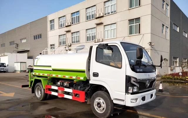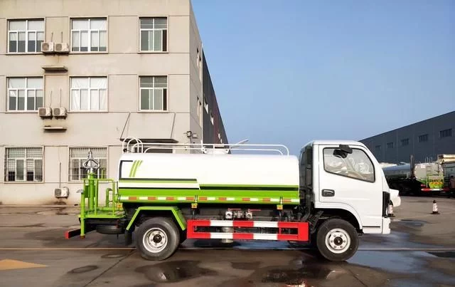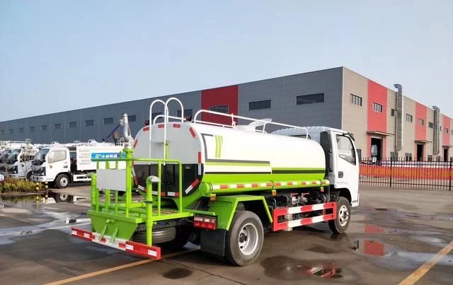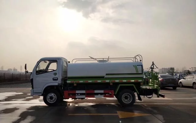 东风小多利卡5方洒水车罐体采用4MM厚武钢专用容积板一次卷压成型,完全做到无缝成型。此款洒水车水泵垂直吸程≧7米,前冲洒水宽度≧16米。罐体内设多道防波隔板,采用高压气体试漏检测,使罐体具有强度高,重心稳,车辆运载安全平稳。大功率水泵,洒水车前冲(喷)后洒,带侧喷,带65消防接口,后平台带泡不带门,前封头带水位计,后平台主管路带1寸浇花接口,后爬梯,配3米长抽水钢丝塑料管两根,用于抽水作业使用;罐后带工作平台,平台上带安全护栏,装高位绿化洒水炮一个,洒水炮可全方位360度旋转,可连续调成直冲状、大雨、小雨、毛毛雨等不同喷洒方式,调成直冲状射程长度≥28m、高度≥12m,调成细雨状射程宽度≥15m;后工作平台下用槽钢连接焊有5mm厚杠,提高洒水车的主动安全性。配备全国质量评比名的大功率专用洒水泵,泵可自吸自排,安装过滤网,带消防接口,可通过消防栓进水,带自流阀,随车选装20米绿化卷盘,可喷洒农药。