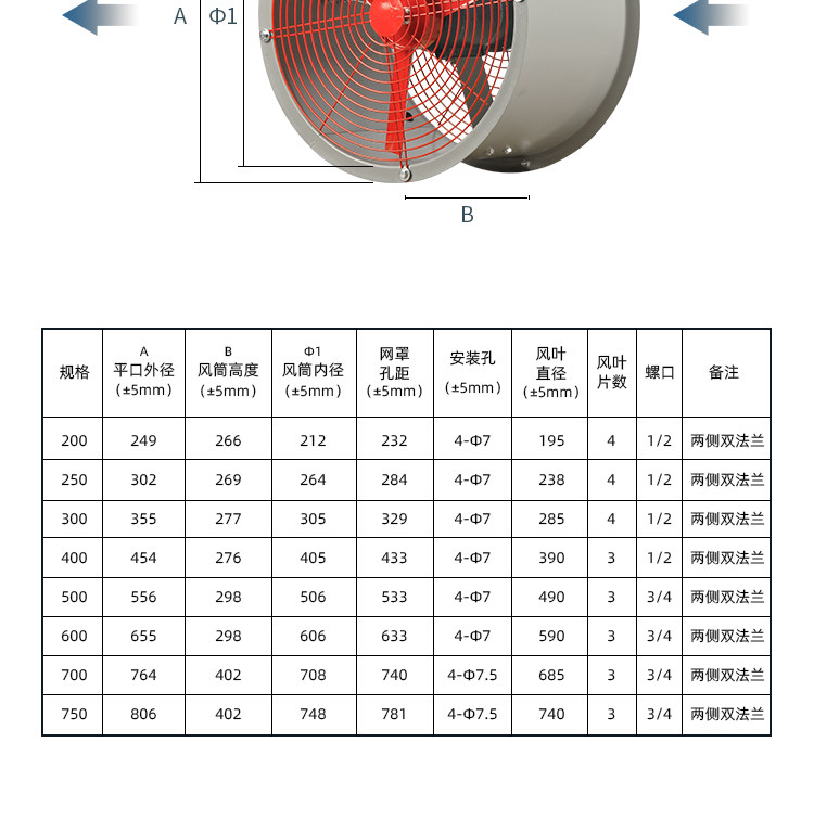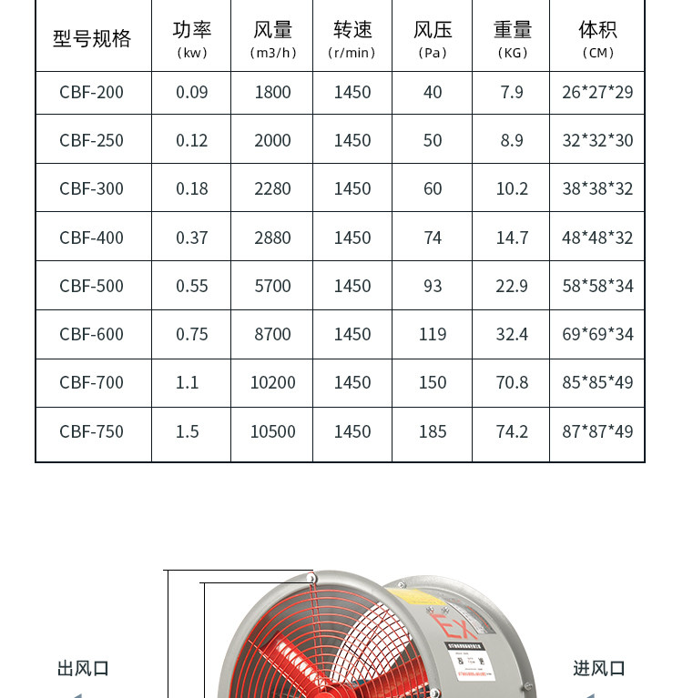 CBF防爆轴流风机220V工业380V管道通风排风换气强力风扇300/400产品特点: