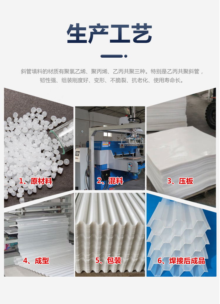 蜂窝斜管又称六角形蜂窝斜管填料从材质为聚丙、乙丙共聚、聚氯乙、玻璃钢四种。蜂窝斜管主要用于各种沉淀和除砂作用。是近十年来在给排水工程中采用 广泛而且成为一项水装置。它适用范围广,效果高,占地面积小等优点。适用于进水口除砂,一般工业和生活给水沉淀、污水沉淀、隔油以及尾张浓缩等,即适用于新建工程,又适用于现有旧池的改造,均能取得良好的经济效益。