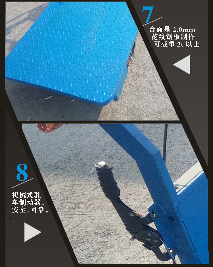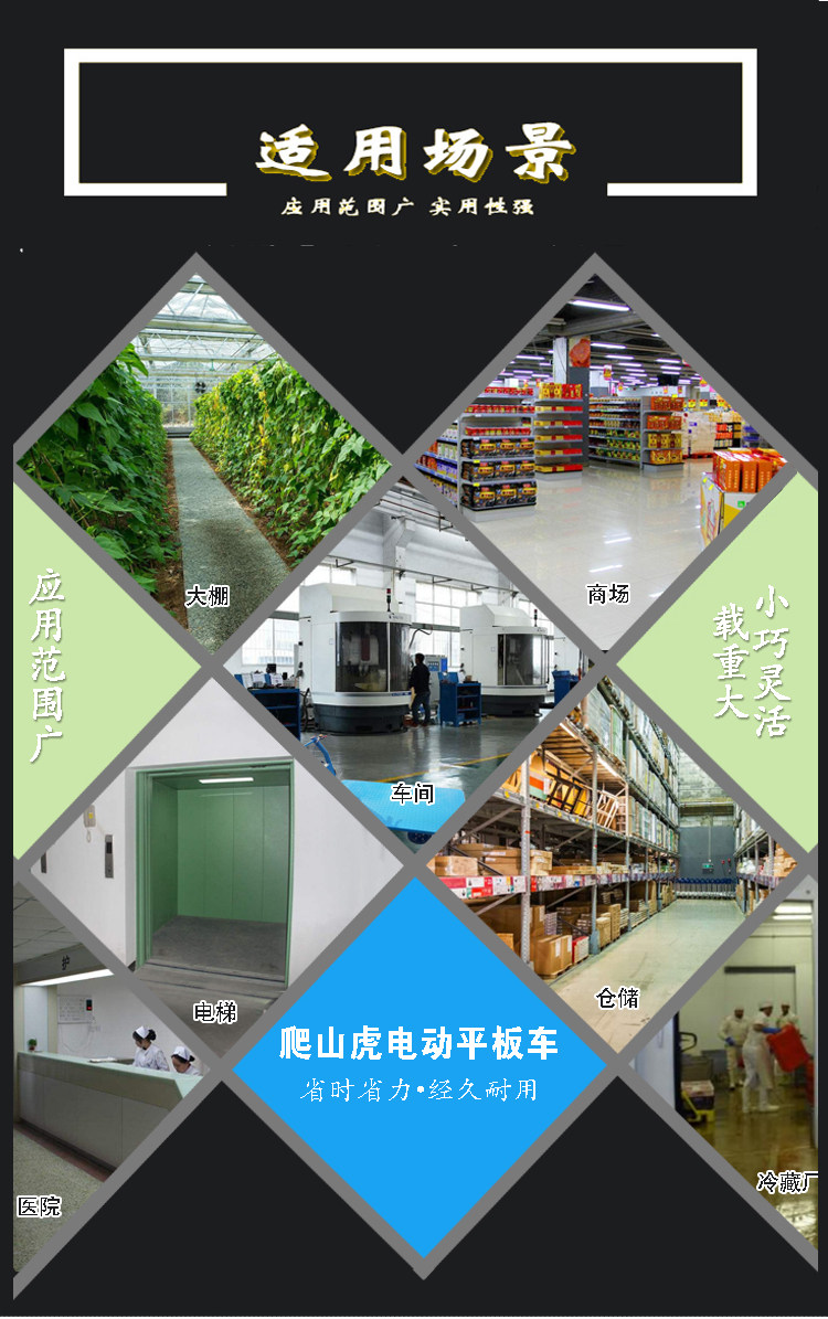 ,耐湿、耐高温。2、低速电机,负重爬坡38度。3、操作灵活,电磁刹车、省时省力,经济实用。