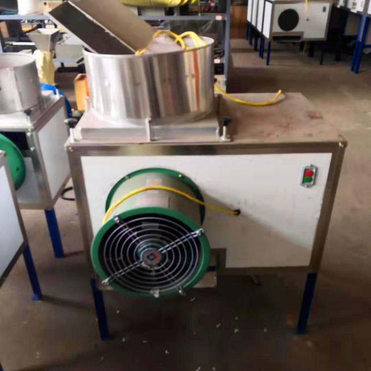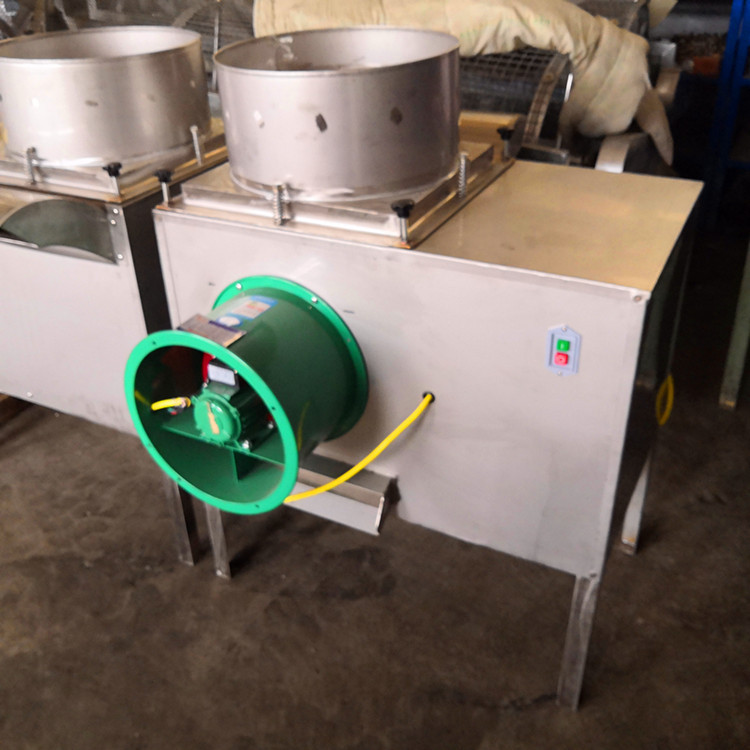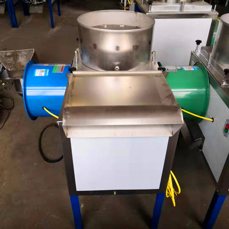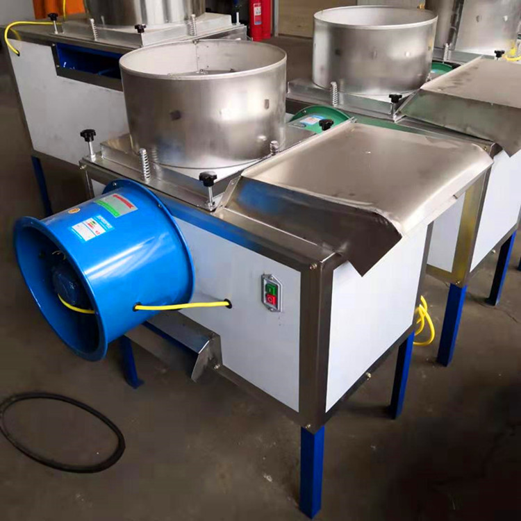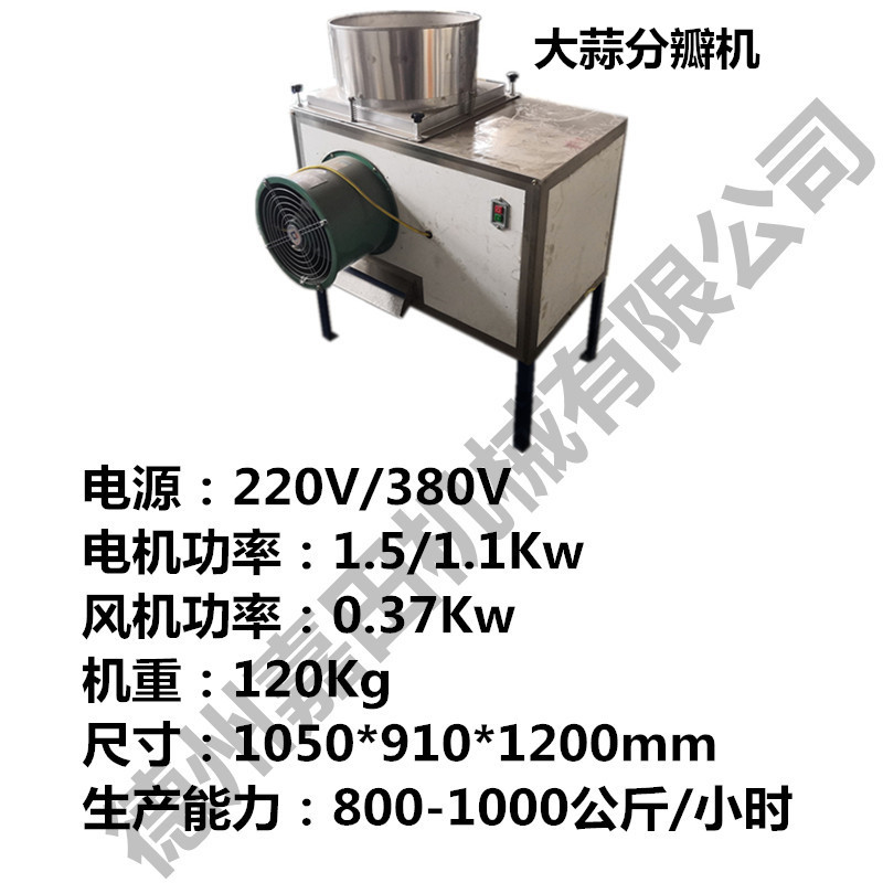 以电机为动力,加工过程中,通过三角带变速传动带动硅胶平盘板主轴旋转,大蒜头在硅胶平盘板与其上部硅胶锥度盘间隔内柔性挤搓,模拟手工分瓣效果。通过调整硅胶平盘板与硅胶锥度盘间隔,获得较佳分瓣效果,分瓣率可以达到95%以上。内置风机可将加工过程的大蒜皮杆分离回收,该机性能稳定、结构紧凑、省时省电、生产效率高、受损率低、使用维修方便。