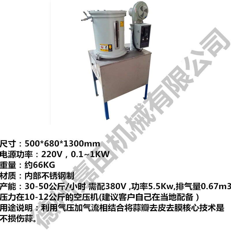 3、设有自动控温及自动导料装置,蒜仁蒜皮自动分离,产品符合卫生标准,因蒜仁不易损伤故可存放多天之优点。