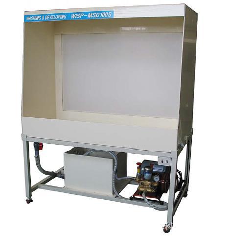 网版经曝光后,可由冲版台冲水显影,日光灯透视并采用高压喷水机喷水达到完全清晰效果,亦可当乳剂涂布台使用时,可选用配有黄色灯灯光作为背景光源,可免除感光乳剂曝光之虑,广泛适应用于丝网印刷冲洗精密网.