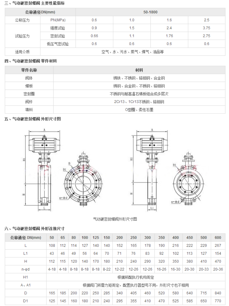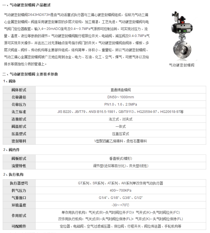 三、气动硬密封蝶阀主要性能指标