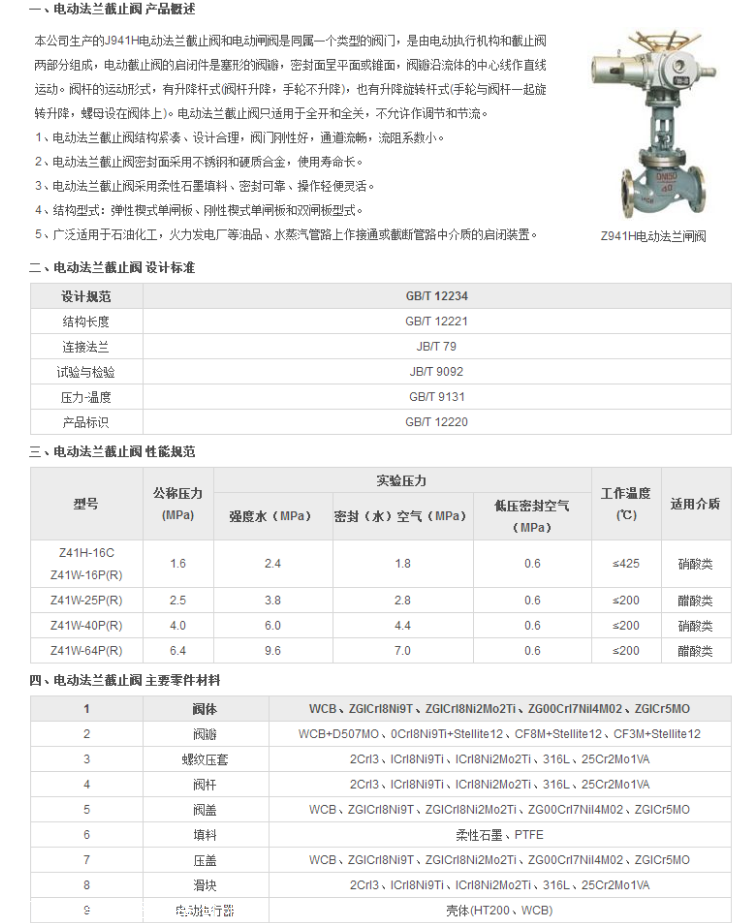 四、电动法兰截止阀主要零件材料