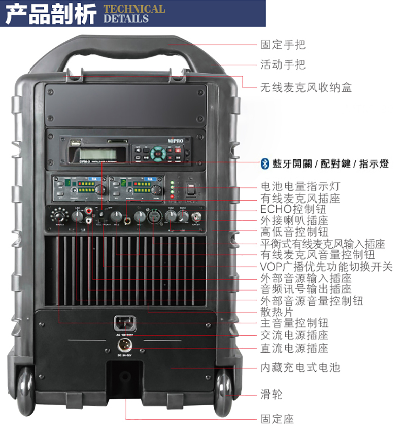 ? 机箱内具有无线麦克风收纳盒,收藏容易使用方便。