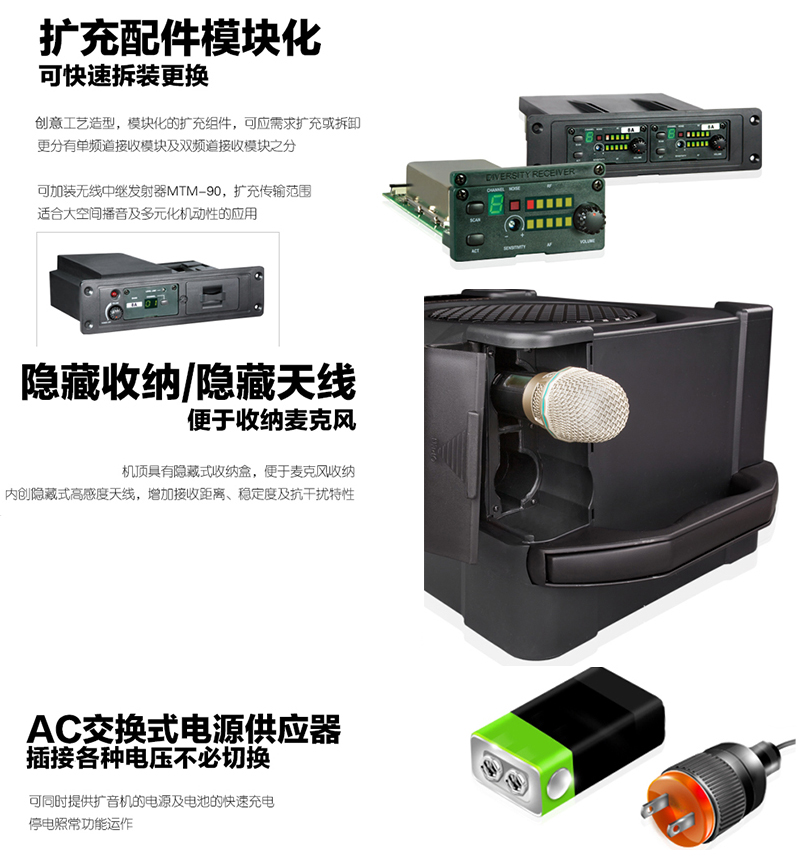 ? 利用无线中继发射器MTM-90,扩充传输范围,适合大空间播音及多元化机动性的应用,是取代传统复杂的扩音设备最简便、最有效率的现代化扩音利器。