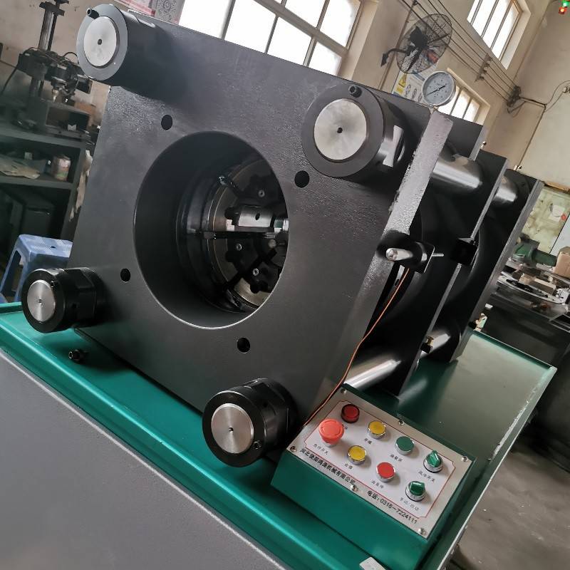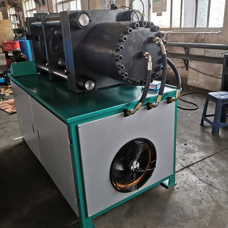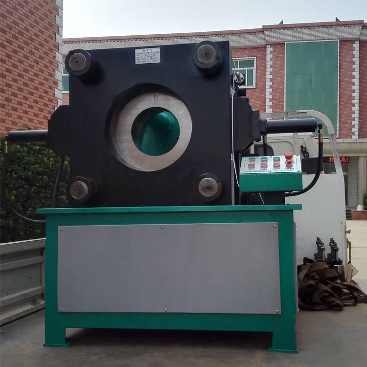 钢管压管机的工作原理 油泵在电机驱动下,输出液压油,推动液压缸里的活塞做左右往复运动,从而使压块推动模座,使模座能产生径向收缩,实现模块对胶管的扣压。当收缩量达到在控制面板上所设定的值时,扣压自动停止,换向阀自动换向,液压油进入油缸下腔,带动上方板向上运动,使模具孔张大,可以取下扣压好的胶管总成。小型压管机。