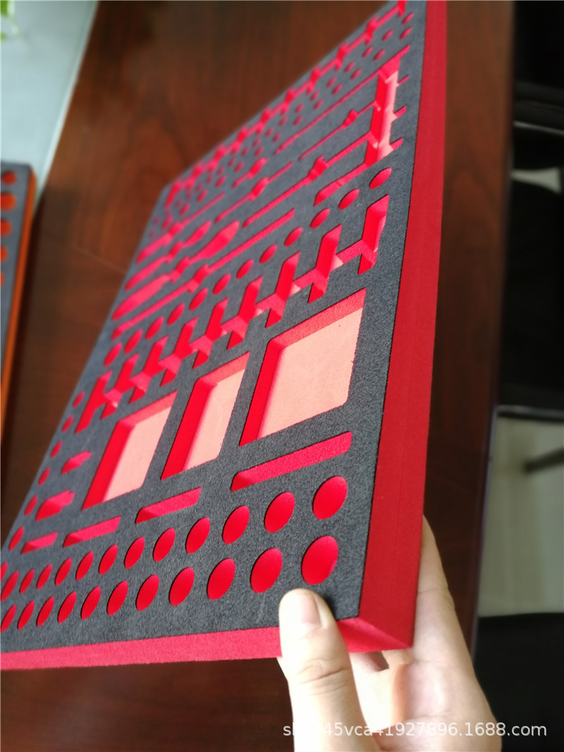 EVA内衬进行各类异形EVA雕刻成型,高难度异形EVA激光切割加工,EVA研磨成形,EVA冷热压成型以及EVA制品深加工,具有良好的缓冲、抗震、隔热、防潮、抗化学腐蚀等优点,且、不吸水。EVA制品经设计可加工成形,其防震性能优于聚苯(泡沫)等包装材料,且符合环保要求。