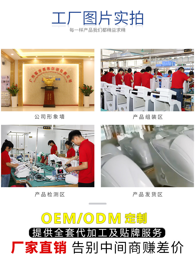 本公司是集研发、生产、销售及服务为一体的高科技美容仪器制造公司。公司产品行销全国30多个省市直辖市,国际上也销往五大洲40多个国家,技术力雄厚,售后系统完善,我们会用优越的品质和贴心的服务给到每一个客户!欢迎广大客户前来咨询OEM定制产品及批发。