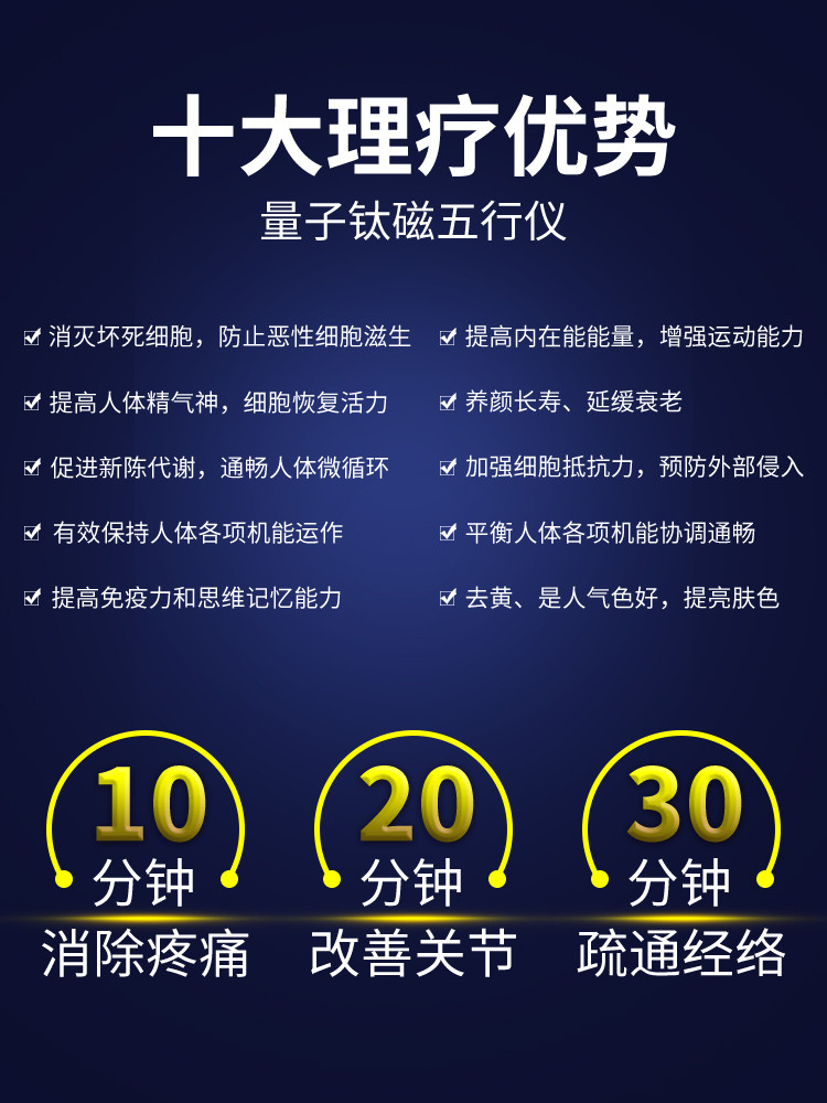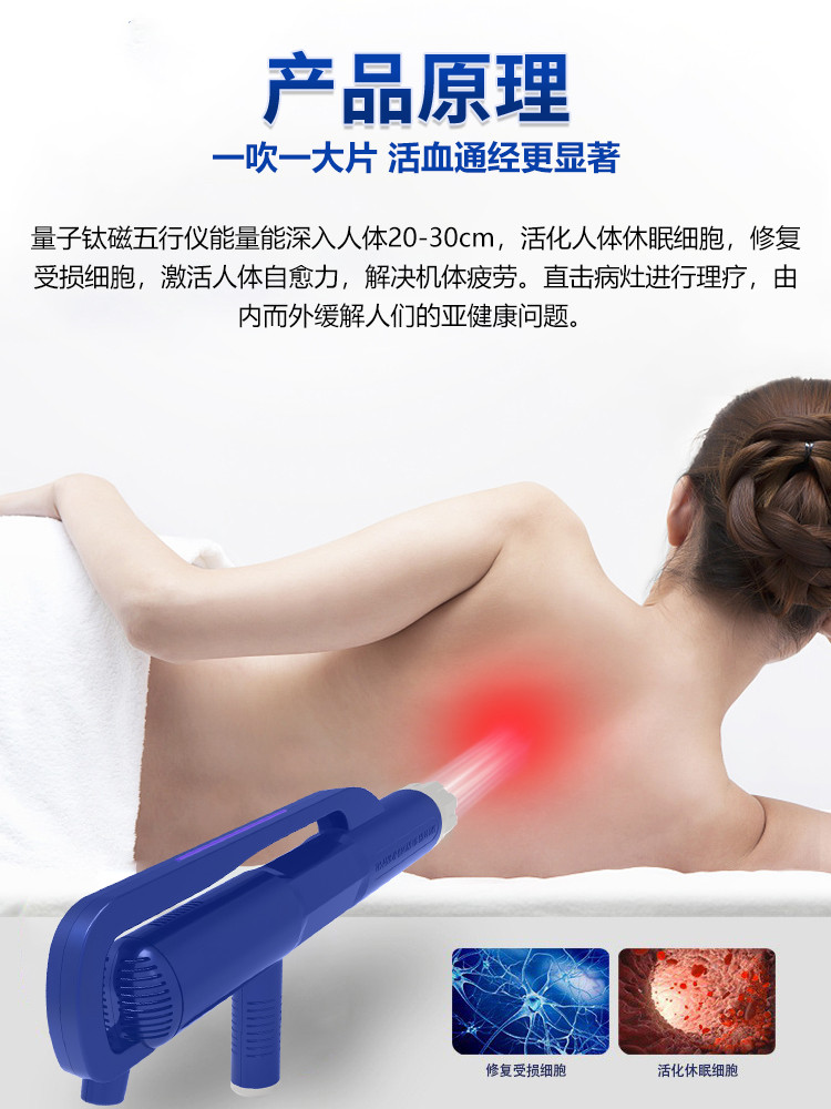 量子钛磁五行仪被称为"生命光线",利用光波能量可以作用在我们的细胞,让我们细胞更健康更活跃,让毒素垃圾快速代谢。修复激活人体细胞,清除自由基,坏死细胞,变异细胞,五效合一疏通经络,疏通淋巴,疏通微循环,深层排毒祛湿消炎,止痛,提供人体综合自愈能力。