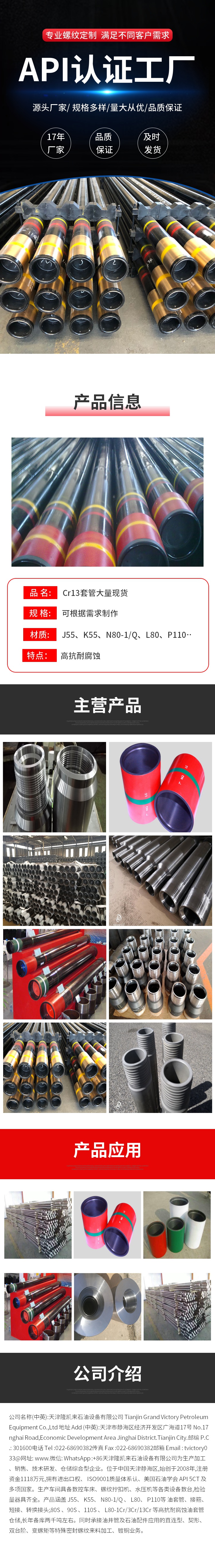 特殊扣型连接件的材质通常与石油套管和油管的材质相同,常见的钢级有J55、K55、N80、L80、P110、13Cr等。T95接箍特殊扣型连接件/L80高密封性油井管连接件/BGT2特殊扣/J55高密封VAM特殊螺纹扣其化学成分中,碳、锰、硅等元素的比例经过优化,以提高连接件的强度和韧性。此外,为了增强抗腐蚀性能,一些特殊扣型连接件还会采用合金钢材质。例如,13Cr特殊扣连接件具有优异的抗腐蚀性能,T95接箍特殊扣型连接件/L80高密封性油井管连接件/BGT2特殊扣/J55高密封VAM特殊螺纹扣适用于高环境。