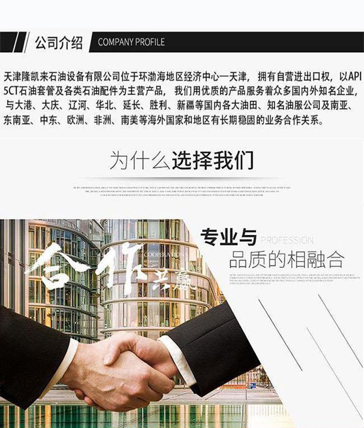 隆凯来公司生产的特殊扣型连接件规格多样,涵盖了多种常见的扣型,如STC、LTC、BTC以及各种高气密性特殊扣型。T95接箍特殊扣型连接件/L80高密封性油井管连接件/BGT2特殊扣/J55高密封VAM特殊螺纹扣公司可根据客户的特殊需求,加工定制不同尺寸和扣型的连接件。T95接箍特殊扣型连接件/L80高密封性油井管连接件/BGT2特殊扣/J55高密封VAM特殊螺纹扣此外,公司还提供符合API Spec 5CT标准的特殊扣型连接件,确保产品质量和性能符合国际标准。T95接箍特殊扣型连接件/L80高密封性油井管连接件/BGT2特殊扣/J55高密封VAM特殊螺纹扣隆凯来公司的特殊扣型连接件在设计和制造过程中,采用了先进的螺纹加工技术和密封技术,确保连接件的高强度和高密封性。