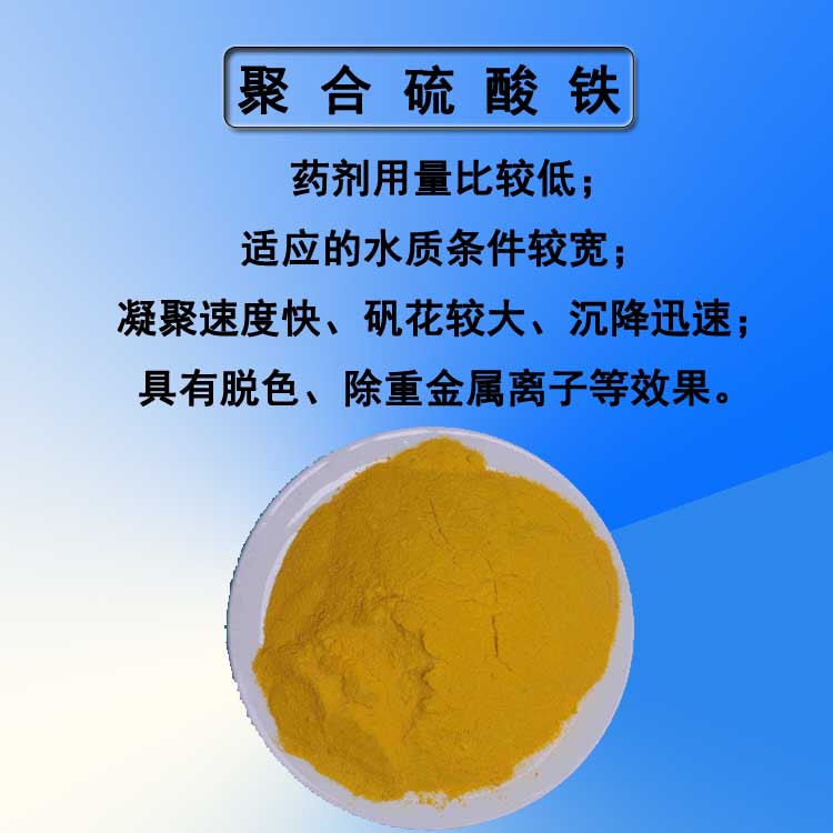 新型高效絮凝水处理剂。聚合硫酸铁应用于环保、工业废水的处理,使用方法与制水厂大体相同,对高色度、高COD、BOD的原水处理,辅以助剂作用效果甚佳。是一种新型高效的絮凝剂。主要用于生活饮用水及工业用水的净化,也可对各种工业废水和城市污水(如食品、皮革、矿山、冶金、印染、造纸、石油等废水)进行净化处理。