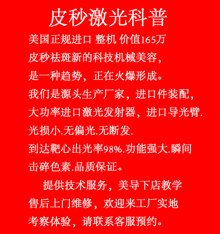 本公司只做进口皮秒,原装进口电源,进口激光器,进口导光臂,拒绝一切套路,随时拆机验货。