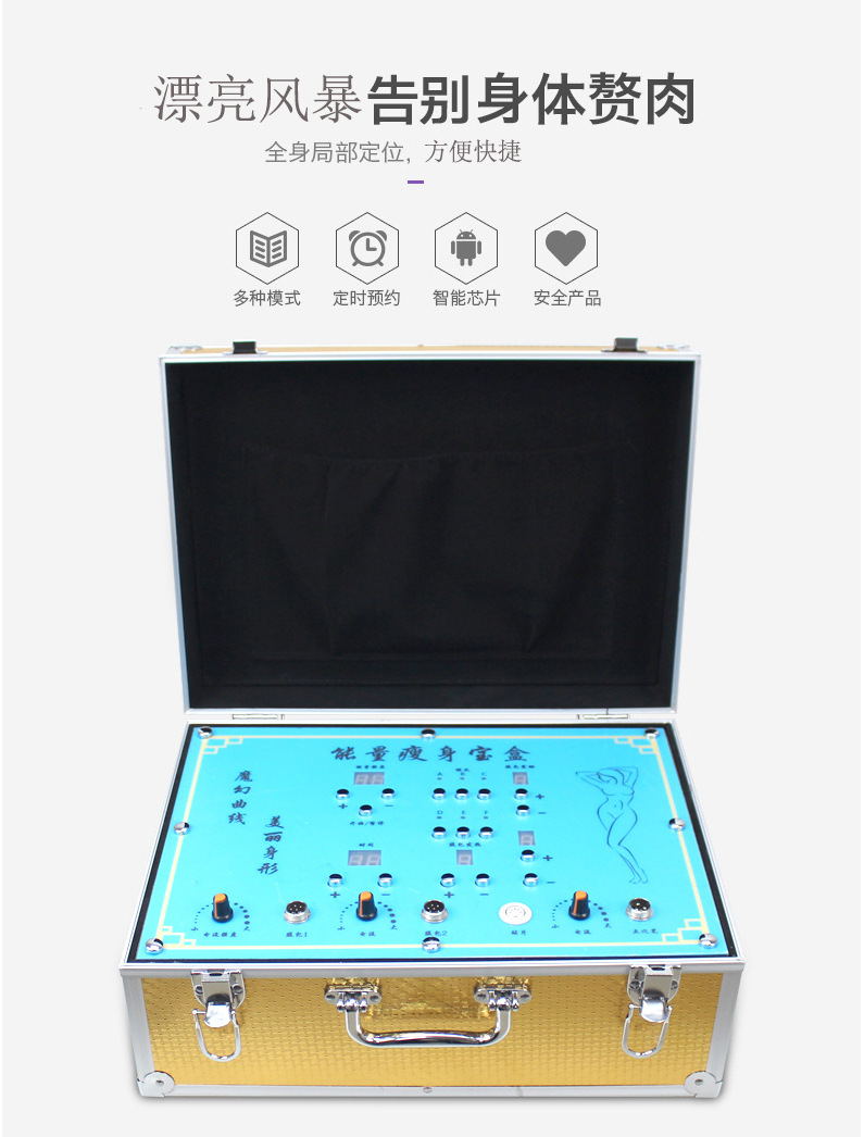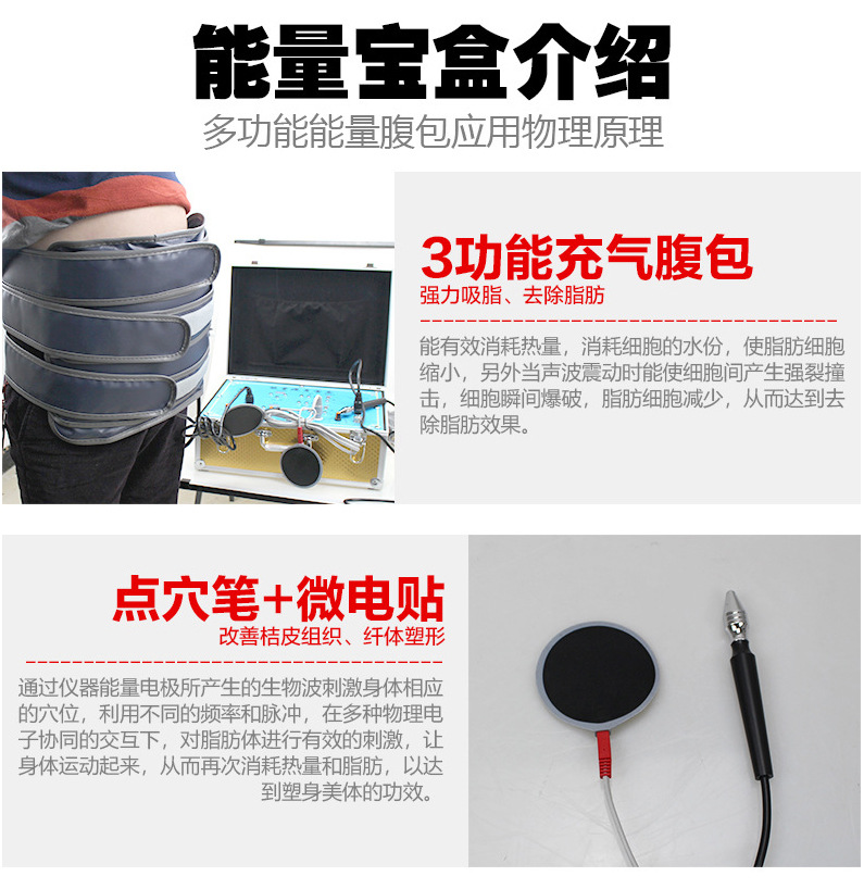 减肥霸王,月光能量廋身宝盒,经络减肥养生仪,带三功能腹包,充气+发热+微电穴位按摩,可以自动选择六种模式调节,配合减肥精油或者减肥膏效果。