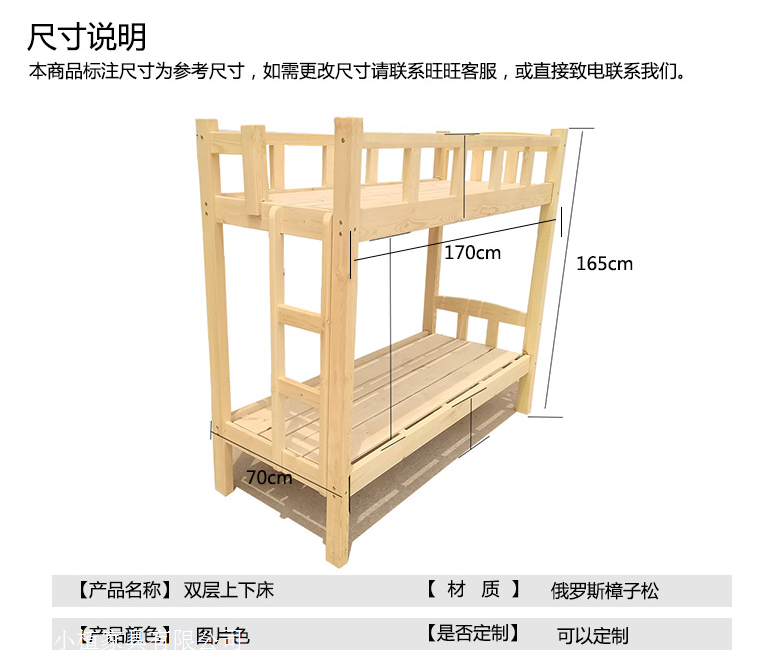 本款上下床是我厂较为经典也是销量较大的一款产品,规格为宽0.7米长1.7米高1.65米,百分百樟子松