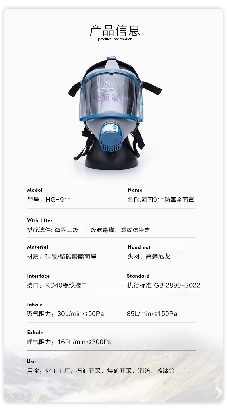 海固911全面罩 防毒防尘全面罩 工业防毒面具