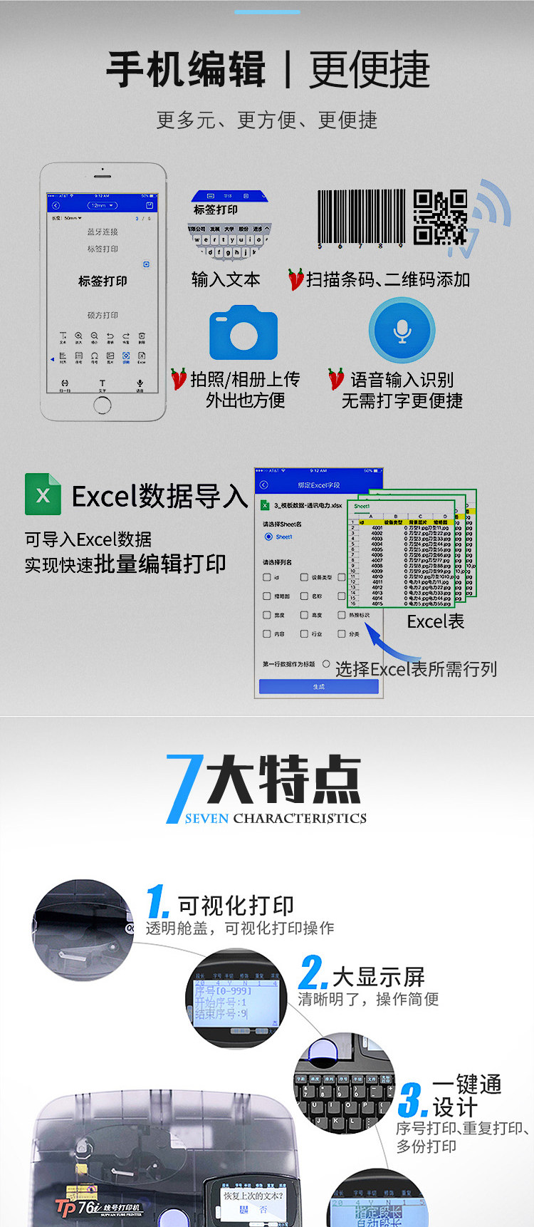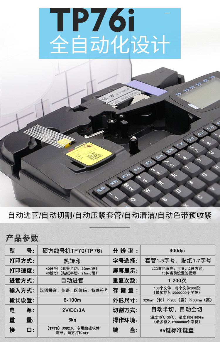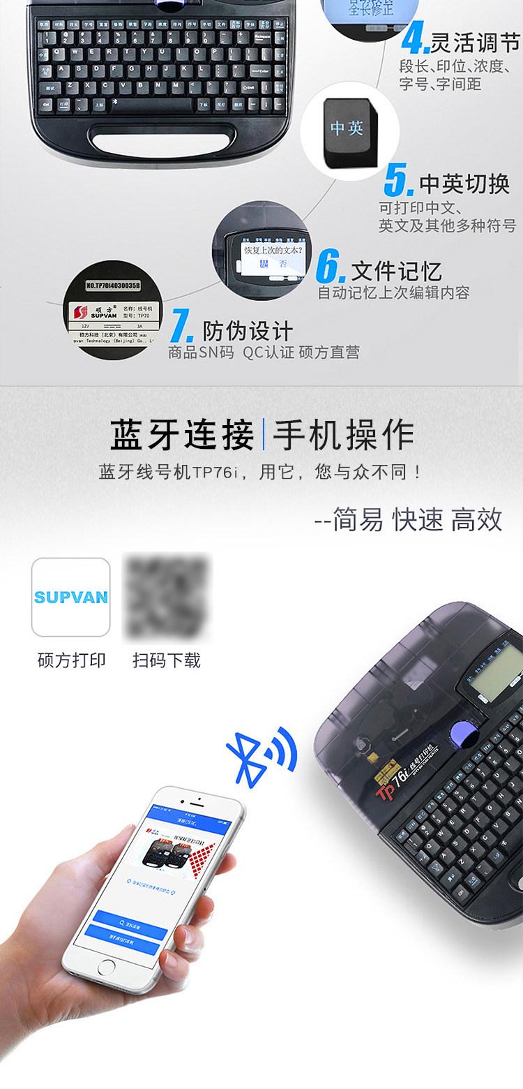 硕方电子蓝牙线号机 可连蓝牙 电脑 单机三合一操作