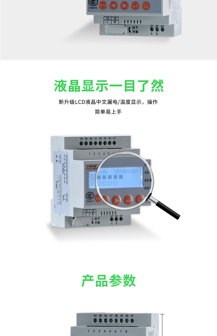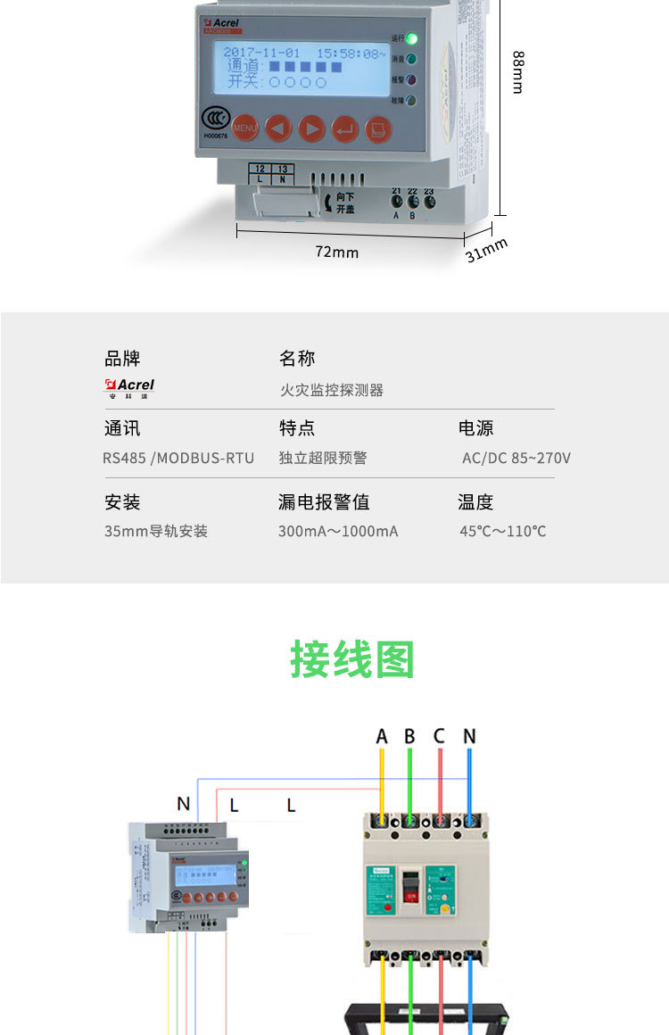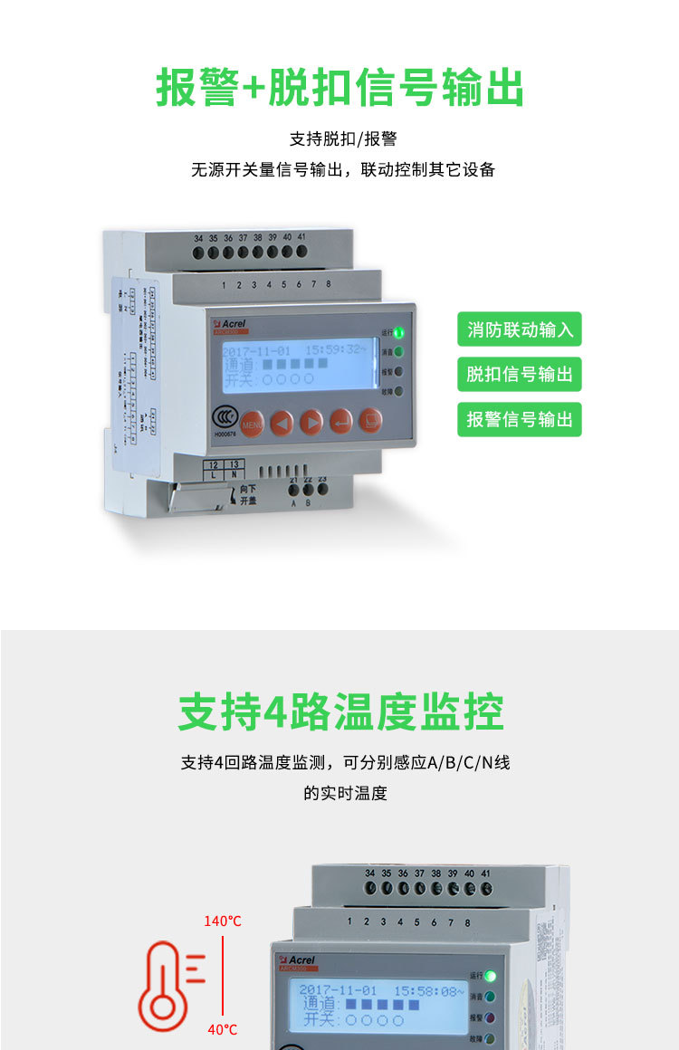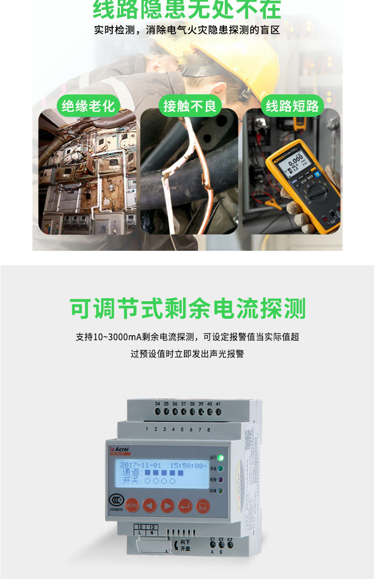 导轨式安装剩余电流探测器 ARCM300-J4 电气火灾监控系统