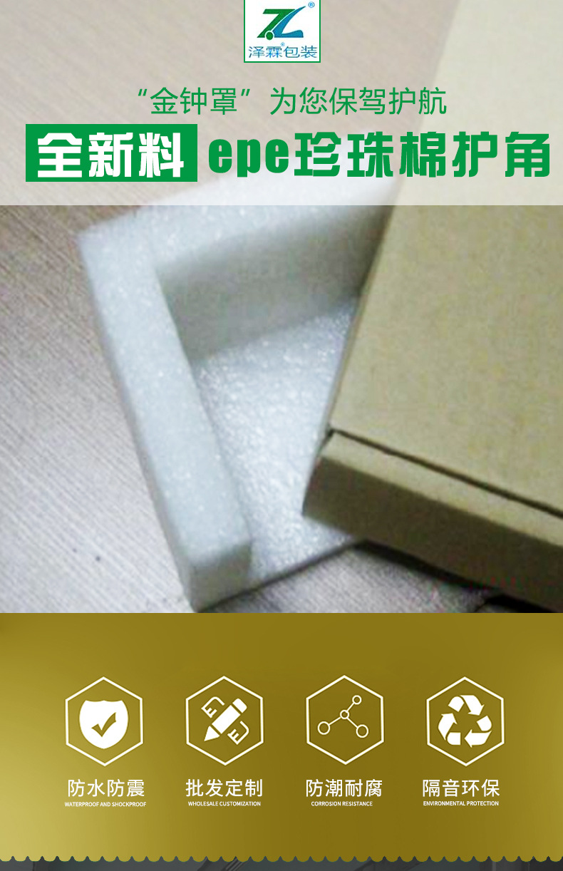 合肥泽霖包装科技有限公司是EPE珍珠棉护角、珍珠棉定制包装、珍珠棉防撞护角、家具护角、珍珠棉电器护角批发等产品生产加工的公司,拥有完整、科学的质量管理体系。合肥泽霖包装科技有限公司的诚信、实力和产品质量获得业界的认可。欢迎各界朋友莅临参观、指导和业务洽谈。