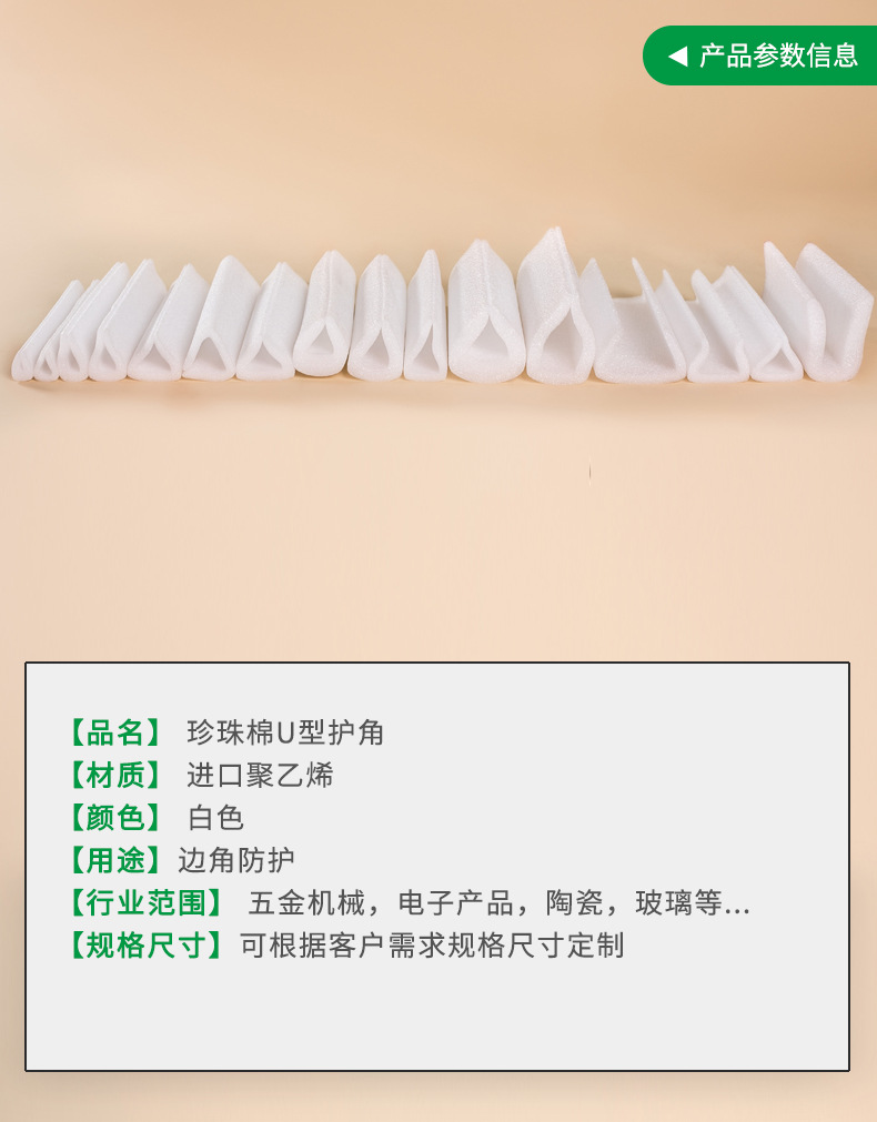 泽霖包装epe珍珠棉U型防撞护角包装厂家定做珍珠棉片防护加工定制