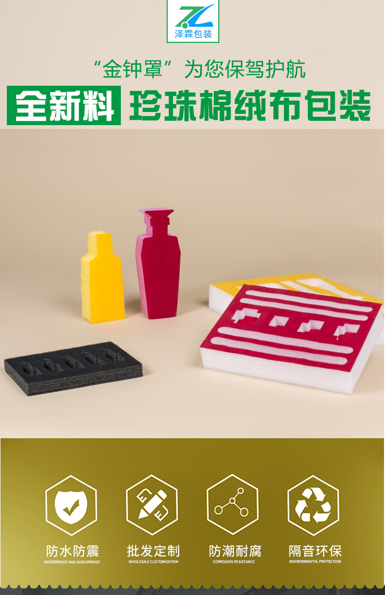合肥泽霖包装科技有限公司是EPE珍珠棉内衬、珍珠棉定制包装、珍珠棉内衬包装、珍珠棉内托、珍珠棉绒布内衬批发等产品生产加工的公司,拥有完整、科学的质量管理体系。合肥泽霖包装科技有限公司的诚信、实力和产品质量获得业界的认可。欢迎各界朋友莅临参观、指导和业务洽谈。