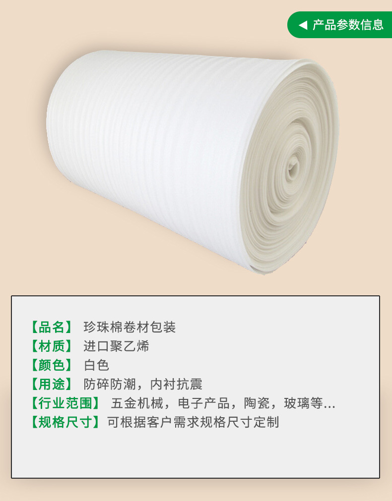 泽霖包装epe珍珠棉卷材现货批发高密度珍珠棉片材规格加工厂定做
