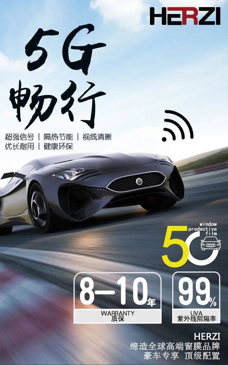 随着技术的再升级,HERZI另辟蹊径,将5G技术升级融入太阳膜,有了HERZI 5G窗膜的加持,车内信号问题已经得到完美解决,智慧行车已不再是难题。