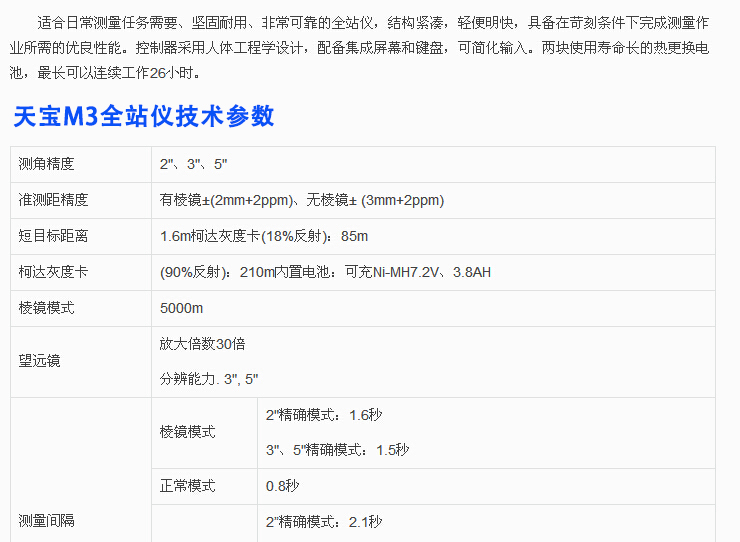 美国天宝进口高精度全站仪M3 智能型全站仪适合日常测量任务,坚固耐用,非常可靠。结构紧凑,轻便明快,具备在苛刻条件下完成测量所需的优良传统。