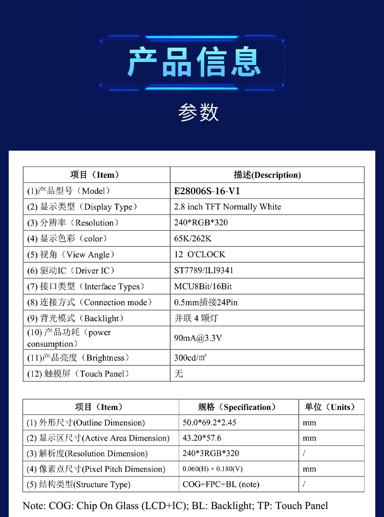 E28006S是一款2.8寸的彩色液晶屏,我是一款标准插接24Pin,间距为0.5mm的LCD显示屏,我的分辨率是240*RGB*320,是一款12点钟的TN型液晶屏。我有不带触摸和带电容触摸两种形态,我有MCU接口8位并口/16位并口可以选择,并且我这种标准接口还涵盖了多种尺寸,需要我的更多信息请联系我的主人亦亚徽哦。