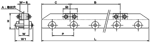 | 名称 | W | W1 | H | P | L?B?C | A(取付穴) | 重量(kg/m) |