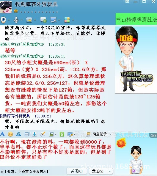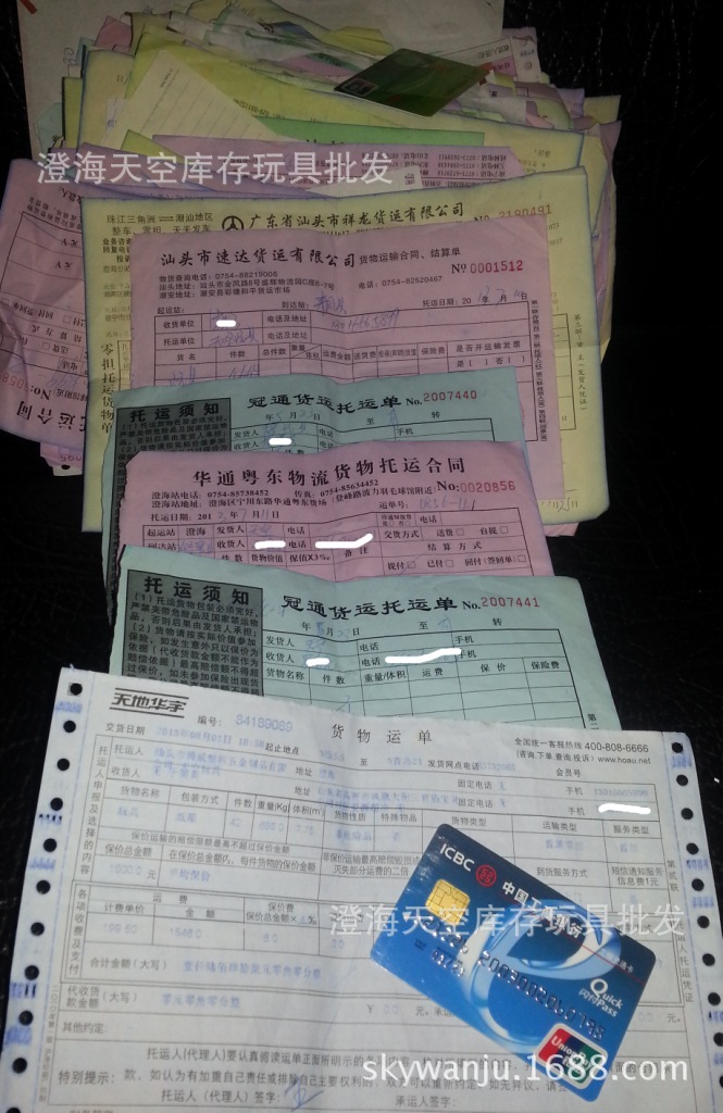 关于按吨走,统装杂款样品: 1吨7500元 一箱玩具是以下各种玩具的一部分(回力、惯性、车、餐具、刀剑、电动、线控、益智玩具、库存芭比娃娃、铃鼓、钓鱼玩具、体育玩具、陀螺、溜溜球、魔方、积木、搪塑、动漫人、军士人.对讲机、礼品 电话机、手机、拉线等等无限多款. 500斤起批 含纸箱重量。按箱随机发货以混装为主)一箱约40-50斤