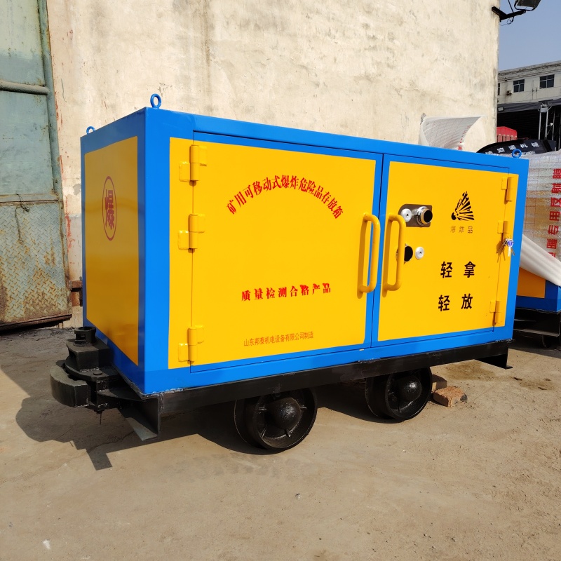 本公司生产的矿用有轨物品运输车,已取得多项检测报告与专利证书,其中该产品主要由两部分组成:上半部分为外置6-8个厚的防爆钢板,内置10个厚的绝缘木板及2个厚的防火防震防静电的阻燃垫组成的矿用箱;下半部分为可供600轨距、762轨距、900轨距轨道使用的材料车。