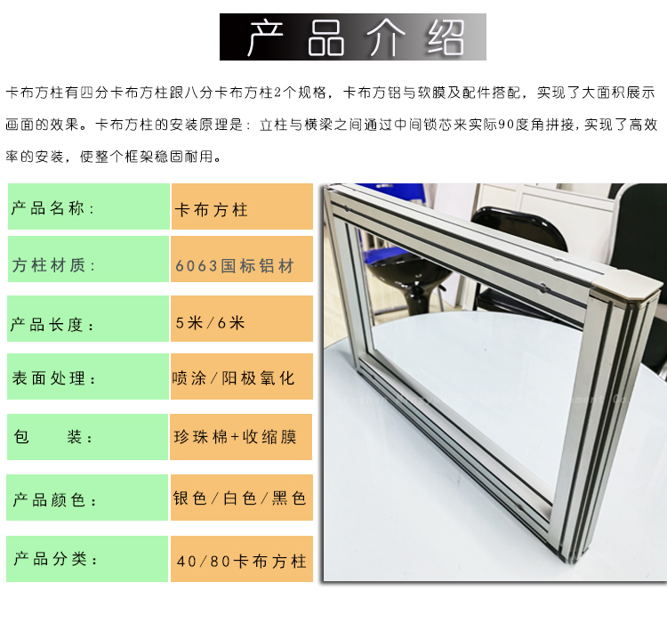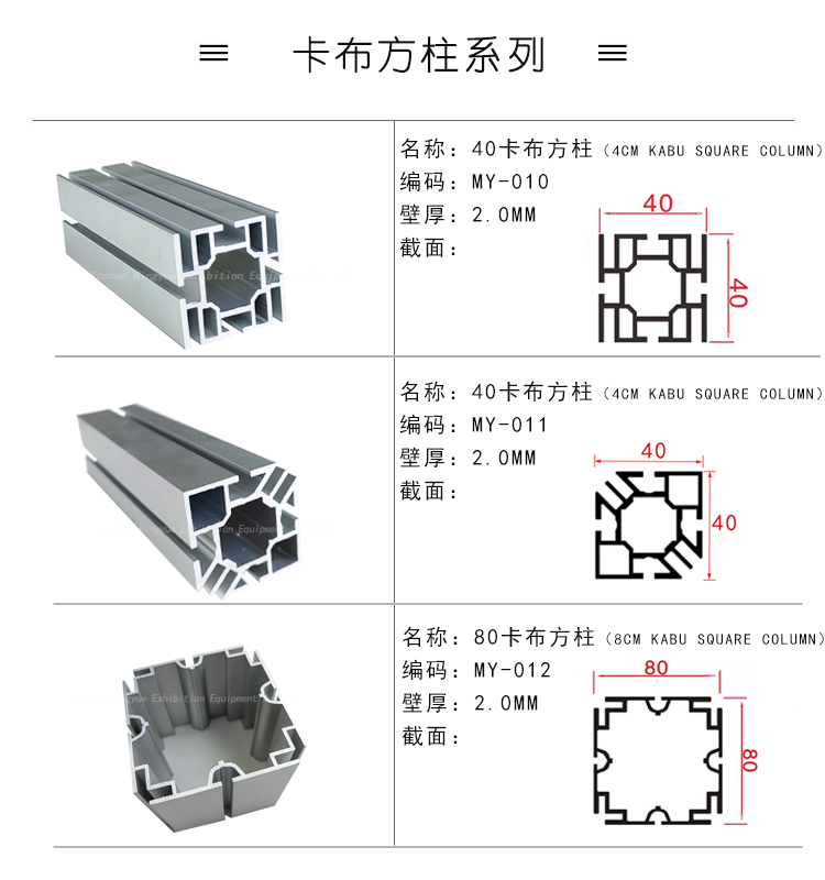80卡布方铝 八分卡布方柱展览灯箱铝材 特装展会八面卡布艺材料