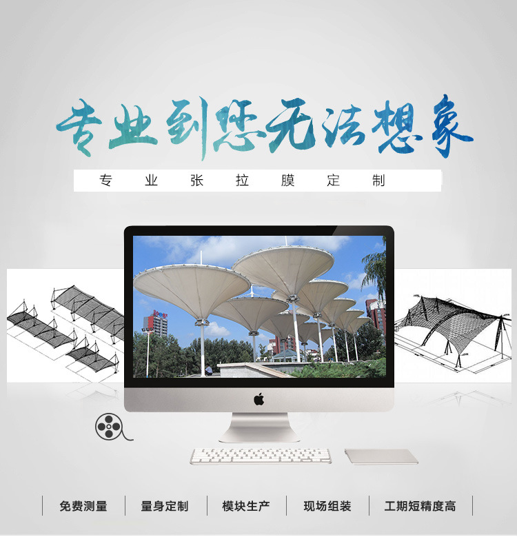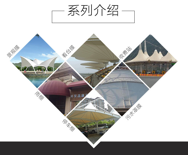 位于江苏镇江丹徒区,公司总部在上海。 是一家从事膜结构研究、设计、建造为一体的公司,公司经营项目涉及张拉膜、骨架膜结构、膜结构、景观膜结构、高速公路膜结构收费站、加油站膜结构、体育场看台膜结构、膜结构停车棚、遮阳膜结构设施、天桥连廊膜结构、公交车站膜结构、公园绿化膜结构小品建筑、固定篷、伸缩篷等方面。有多年的经验和技术,是广大客户的理想选择。望众多客户能够亲自到厂订单以免被80%无厂人士的蒙骗。