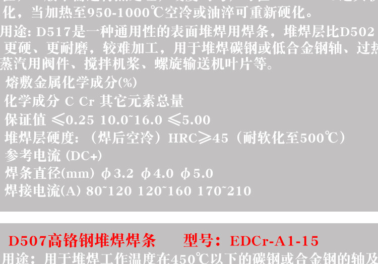 D507 D517 D547 D557 D507耐磨焊条堆焊焊条
