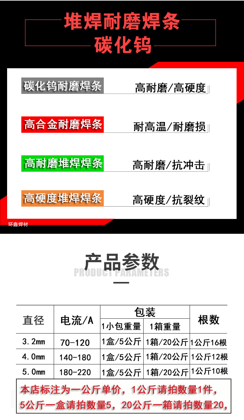 耐磨电焊条直径:2.5mm 3.2mm 4.0mm 5.0mm