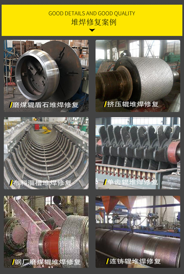 水泥行业:辊压机挤压辊、立磨磨辊及磨盘、风机叶片、衬板、溜槽、漏斗衬板、破碎机锤头及锤盘、挖掘机斗齿、鄂板、立窑塔篦齿、搅拌机叶片等。