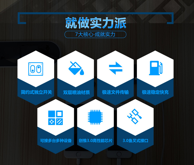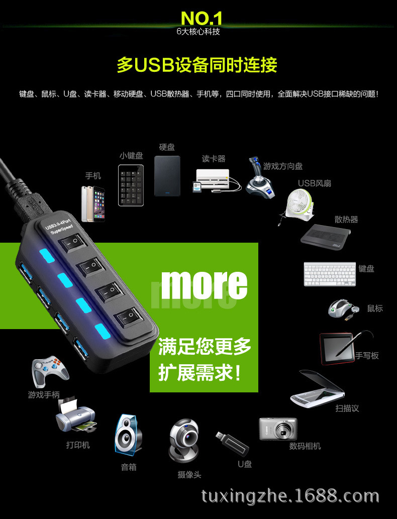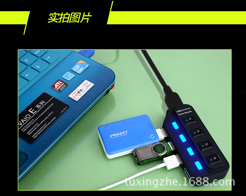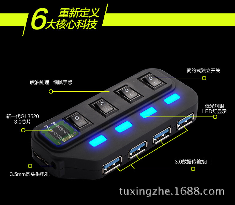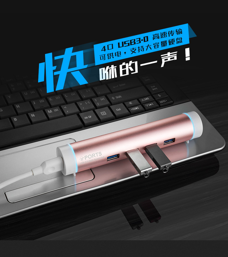 重要提示:本公司USB3.0HUB有贴储存芯片烧录快充程序,插手机USB充电器上兼容苹果系统,苹果5|5S|6|6S、安卓系统手机等充电。